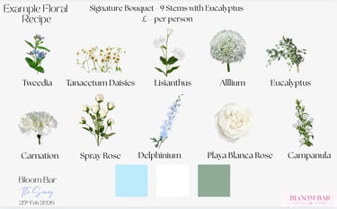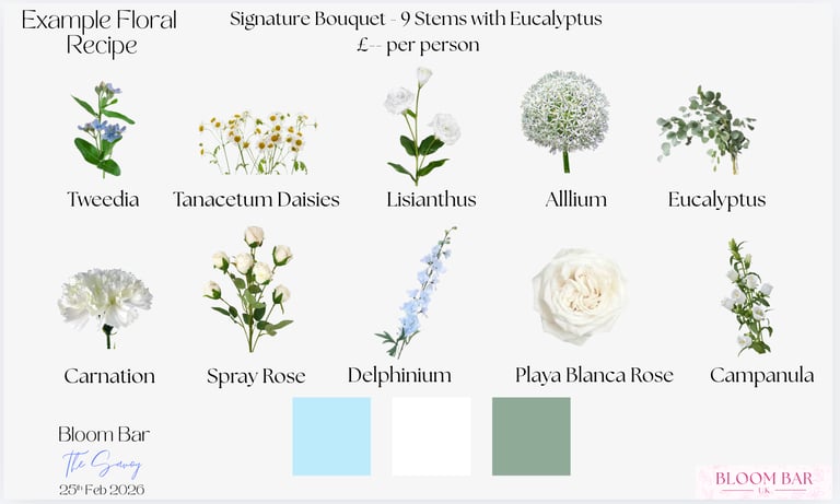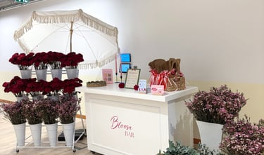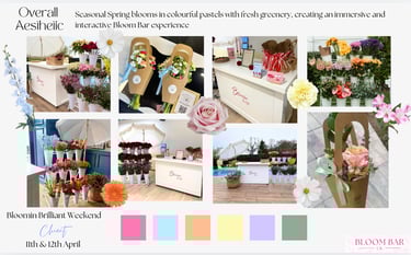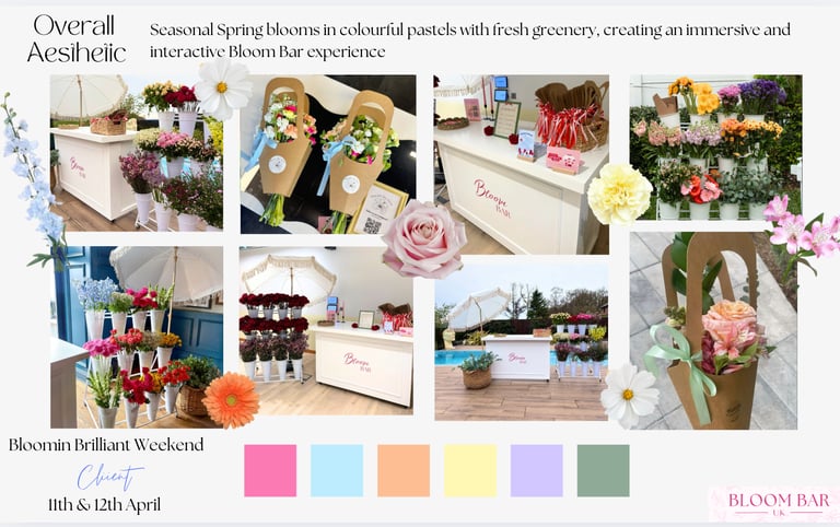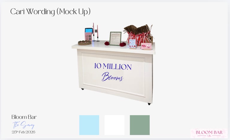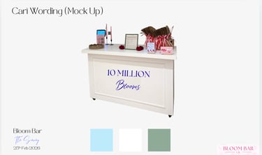 To help you visualise your Bloom Bar, we can share previous examples, mood boards, and mock ups. These show flower combinations, bouquet sizes, and branded finishes, helping you plan the perfect setup.